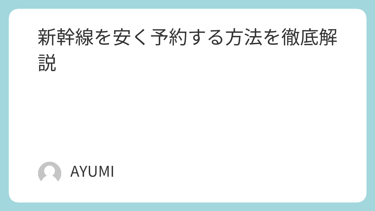 「新幹線のチケット、どうにかしてもっと安くならないかな…」